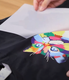 2. Poser le DTF et repasser pendant 15 secondes à 155 degrés, retirer le film.